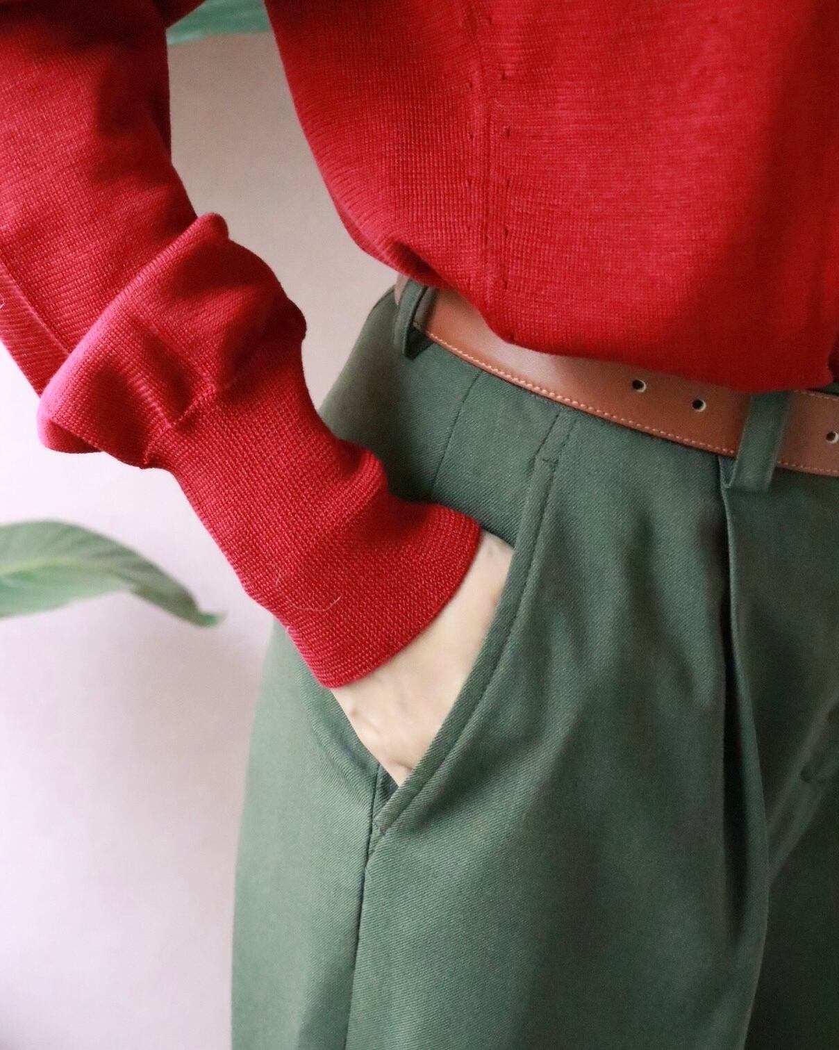 メンズライクになりがちなシルエットですがフェミニンなトップスを合わせれば女性らしいスタイルも楽しめます。