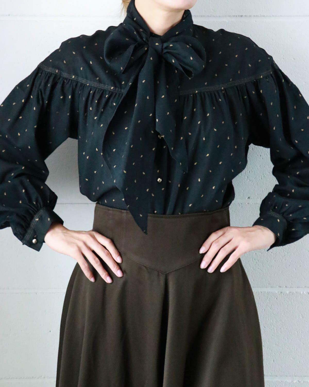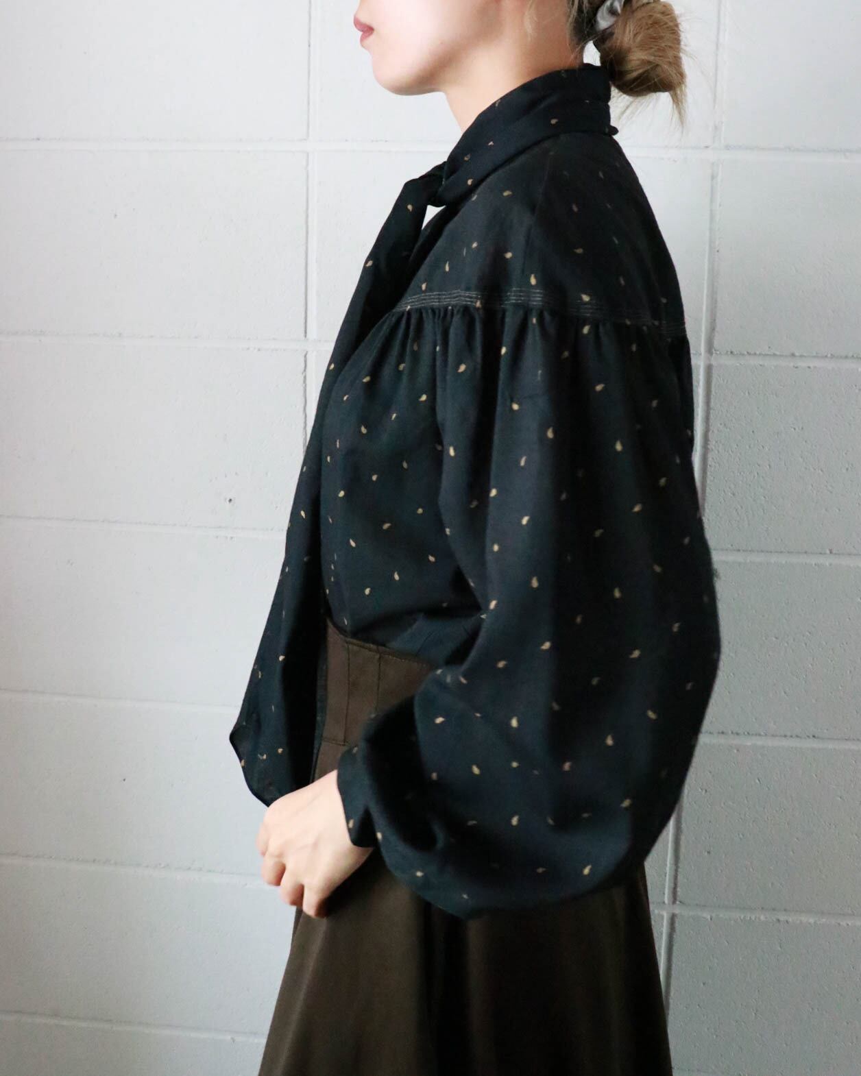 黒地に黄色の小さなドロップのような柄が施され、シックでありながらもアクセントとなるデザイン。