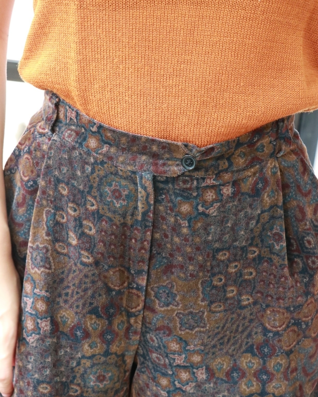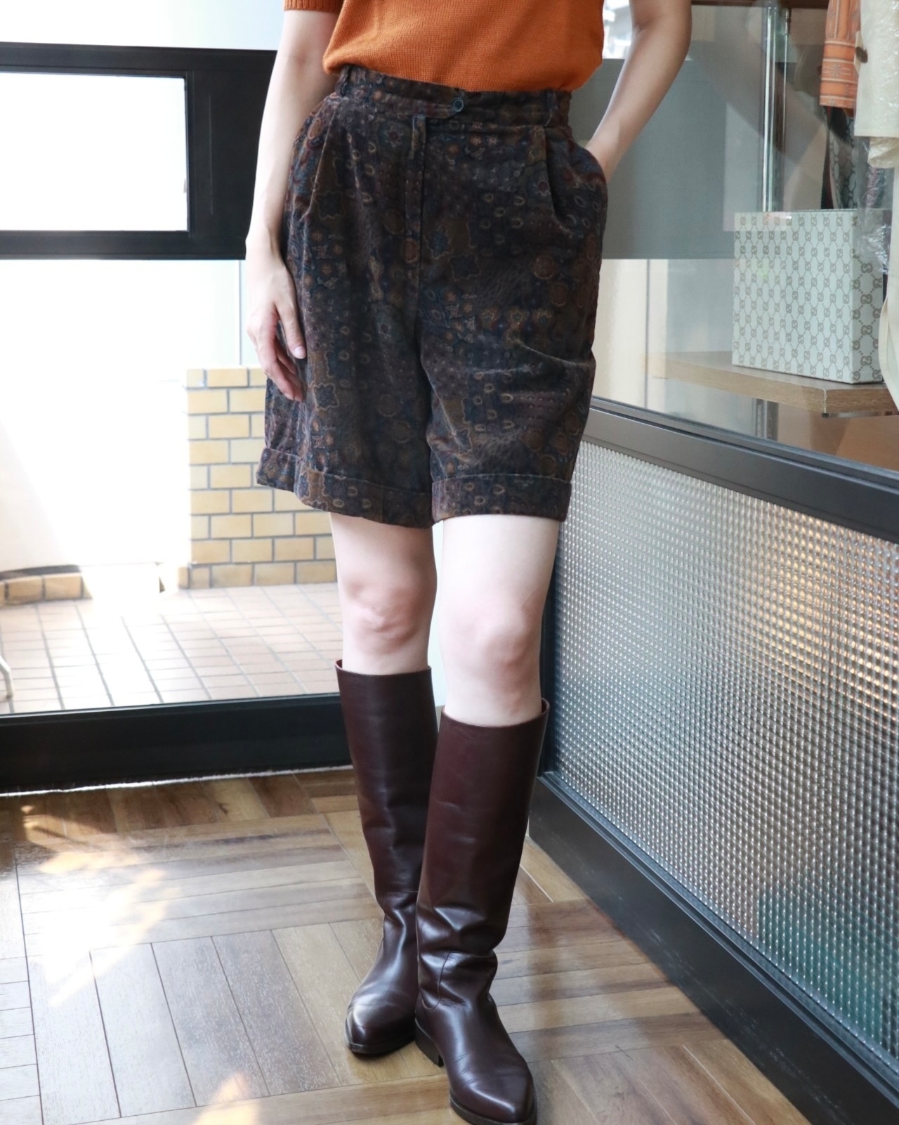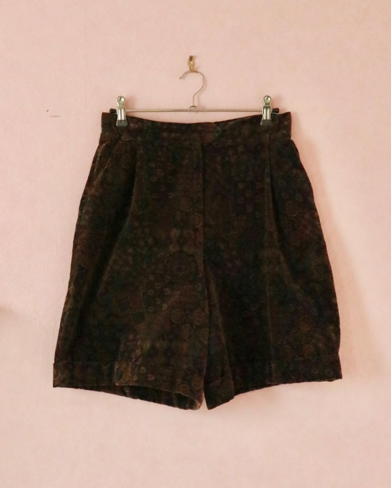 クラシックな雰囲気と複雑で繊細な柄が印象的なショートパンツ。程良い長さと、ベロア生地の光沢感と柔らかさが上品さをプラスし、カジュアルにもエレガントにもマッチします。