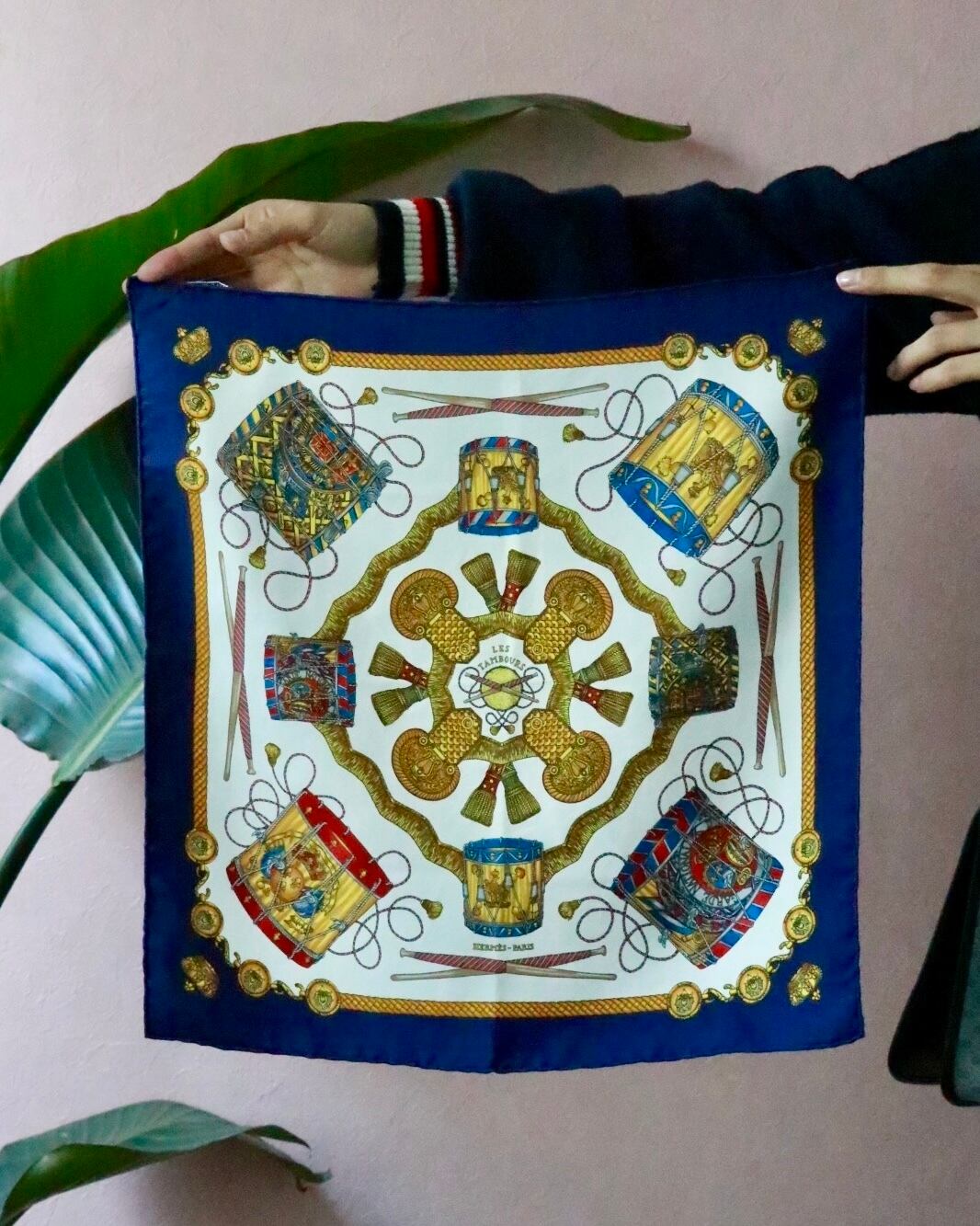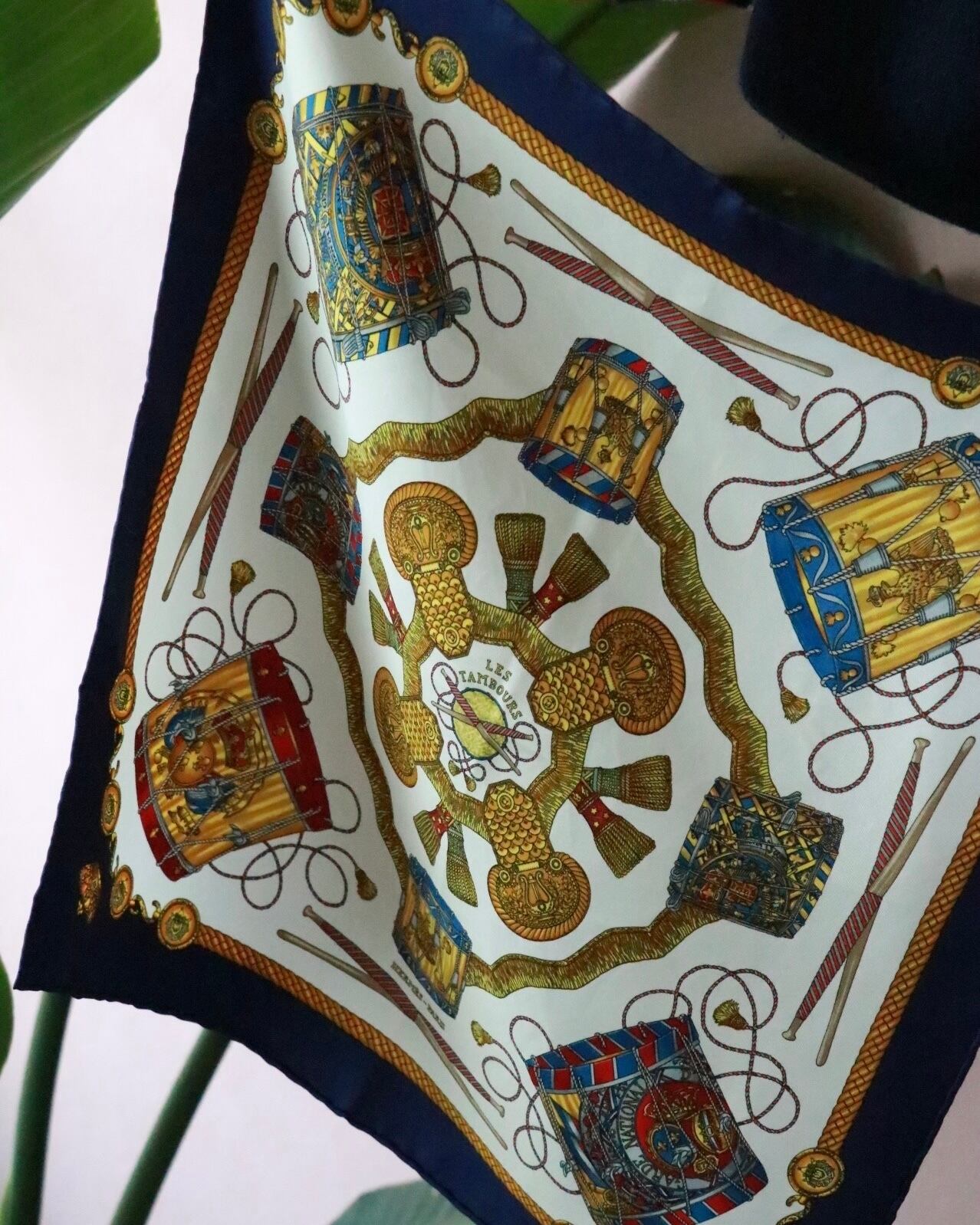 はっきりとした色合いとエルメスらしい上品さで顔まわりが華やぐミニスカーフ。