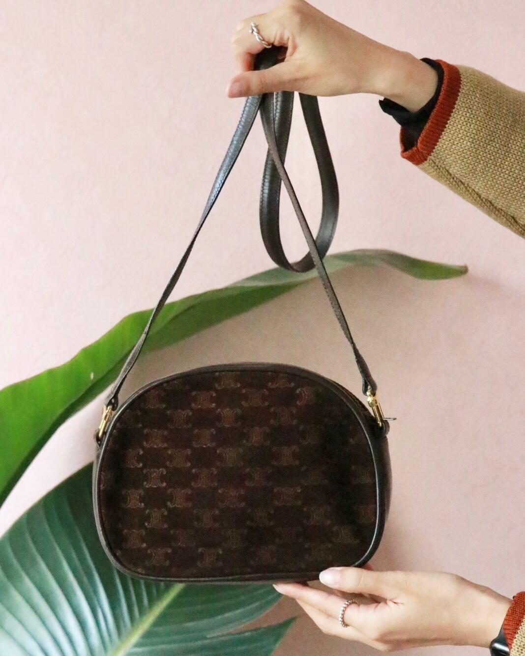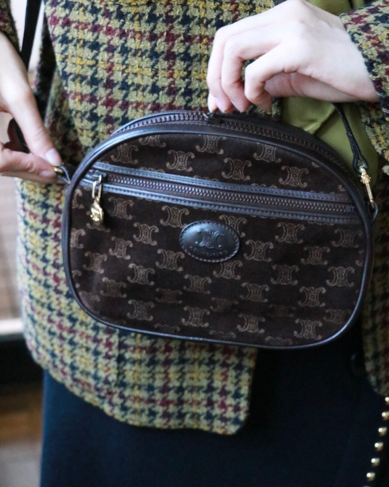 セリーヌのショルダーバッグ。女性らしい気品あるブラウンカラーはコーディネートのアクセントにもぴったり。珍しいスエード素材でシーズンムードも高まる。貴重品が十分入る大きさで、実用性にも優れています。