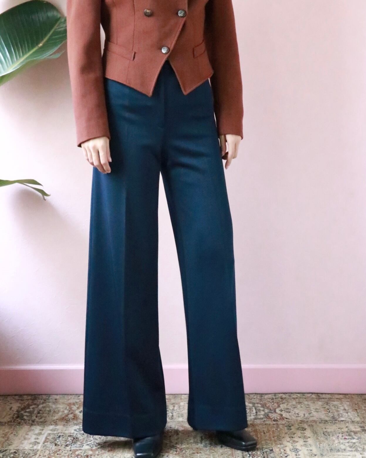 ハイウエストから広がるラインが美しく、70'sを彷彿とさせるシルエット。