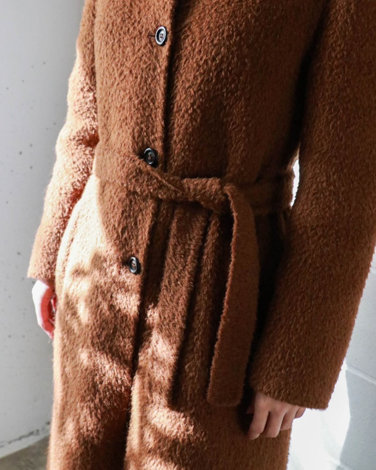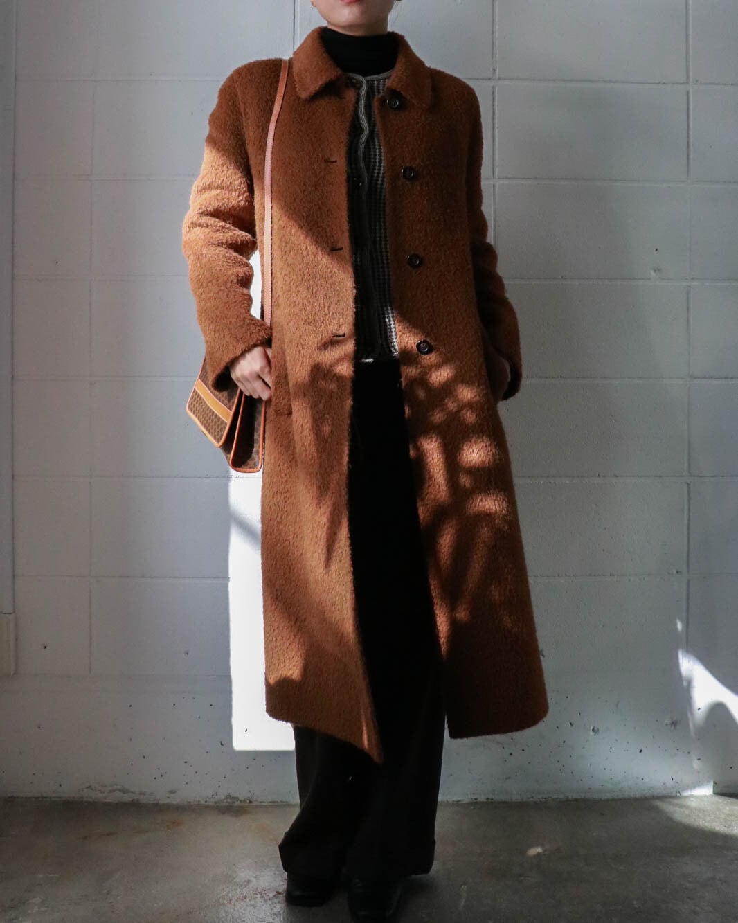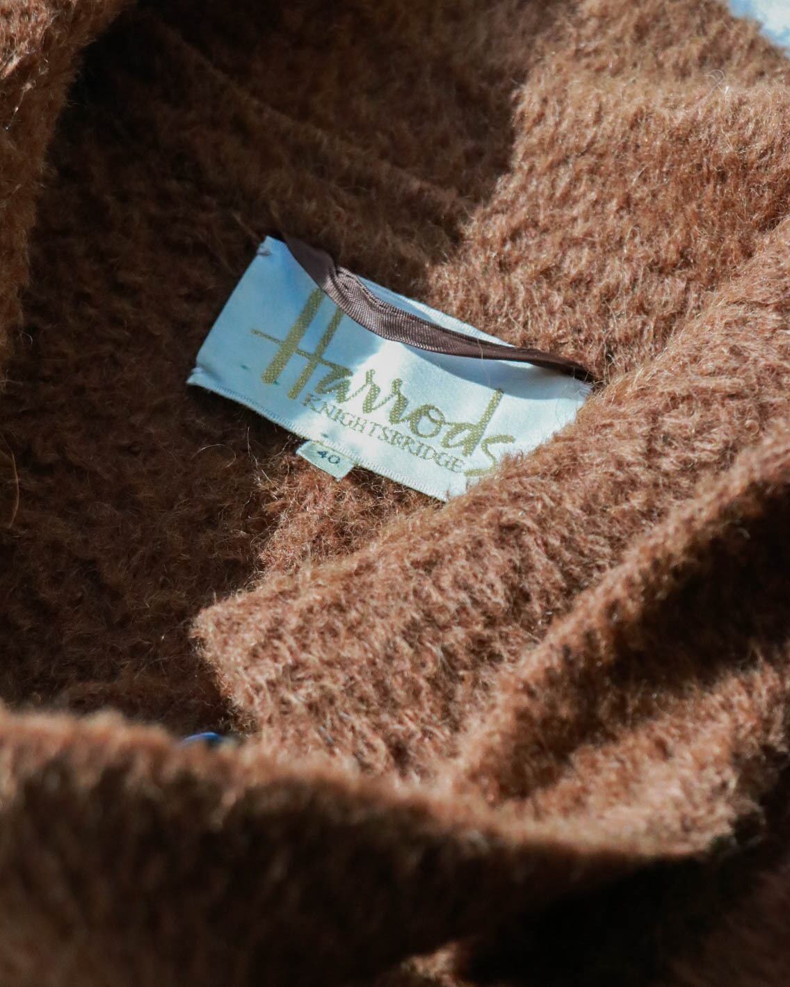 1849年からロンドンに居を構える「世界一の百貨店」として知られる魅力あふれる老舗百貨店のハロッズ。上品で女性らしい佇まいでありながら、洗練されたシルエットとブラウンカラー。タグは無くなってしまってますが素材はアルパカ100%と柔らかく上質な生地をたっぷりと使用。スタイルを格上げするアウターとして、ワードローブに追加したいアイテムです。