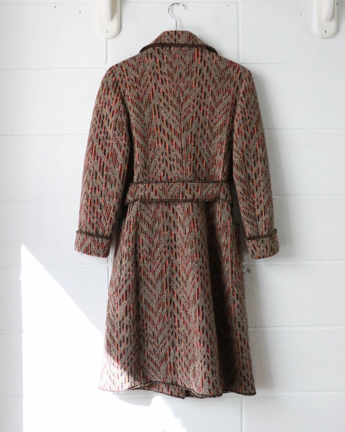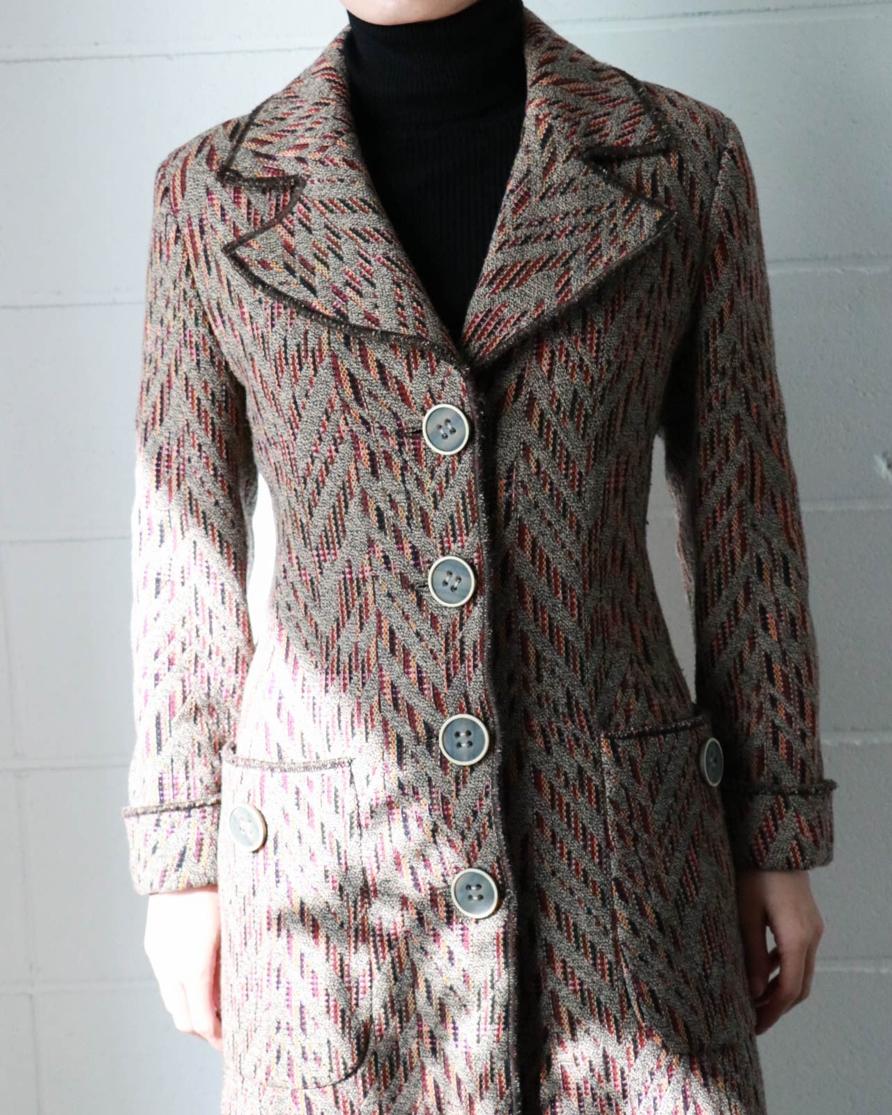 グレーをベースに色とりどりに編み込まれたヘリンボーンパターン