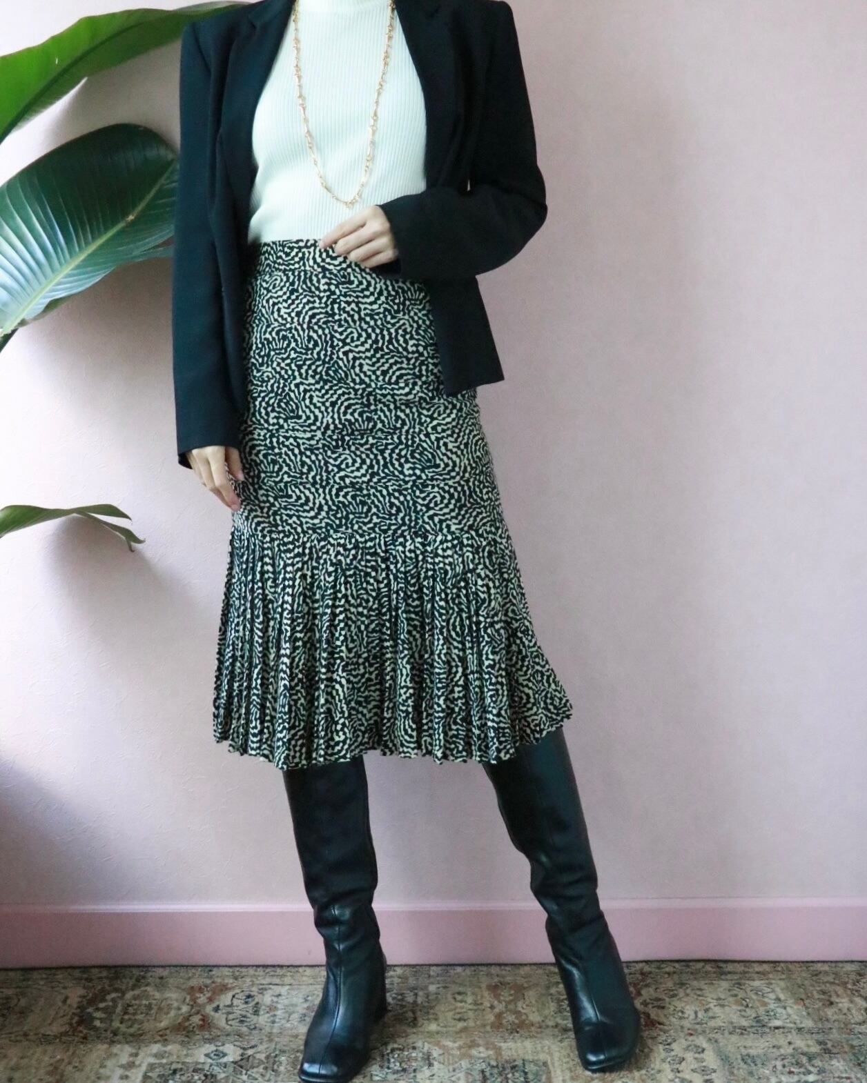 ヴェルサーチのマーメイドスカートはプリーツになった裾がデザインにメリハリを与え、