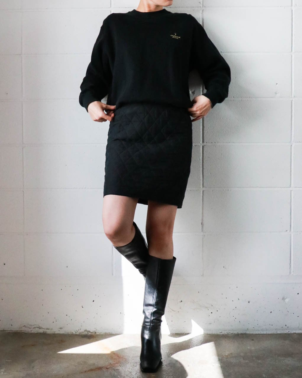 上質なシルク素材を使用した、ブラックのキルティングスカート。