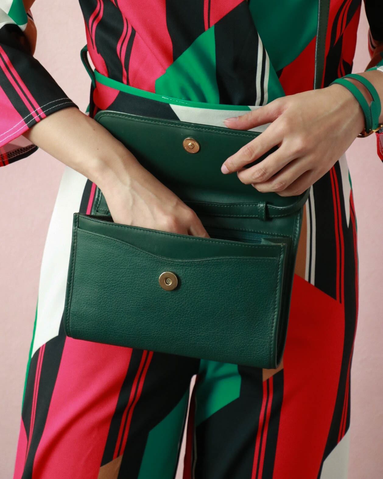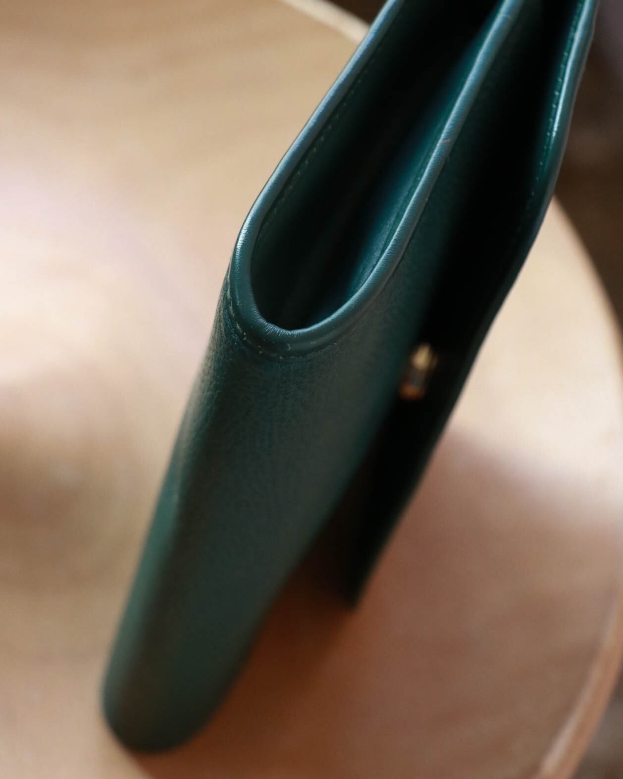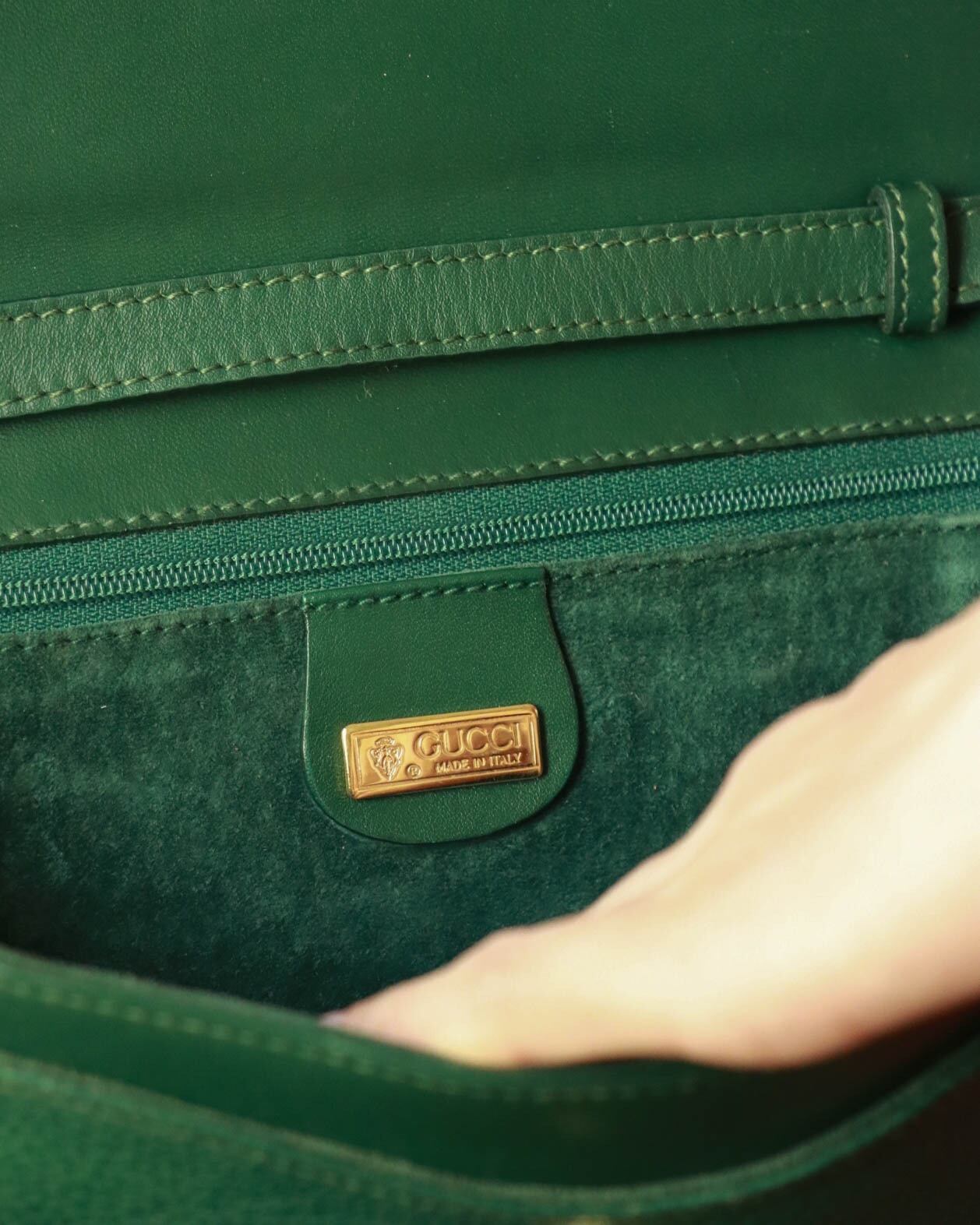 こちらのグッチショルダーバッグは奥行きのある深緑がエレガント。