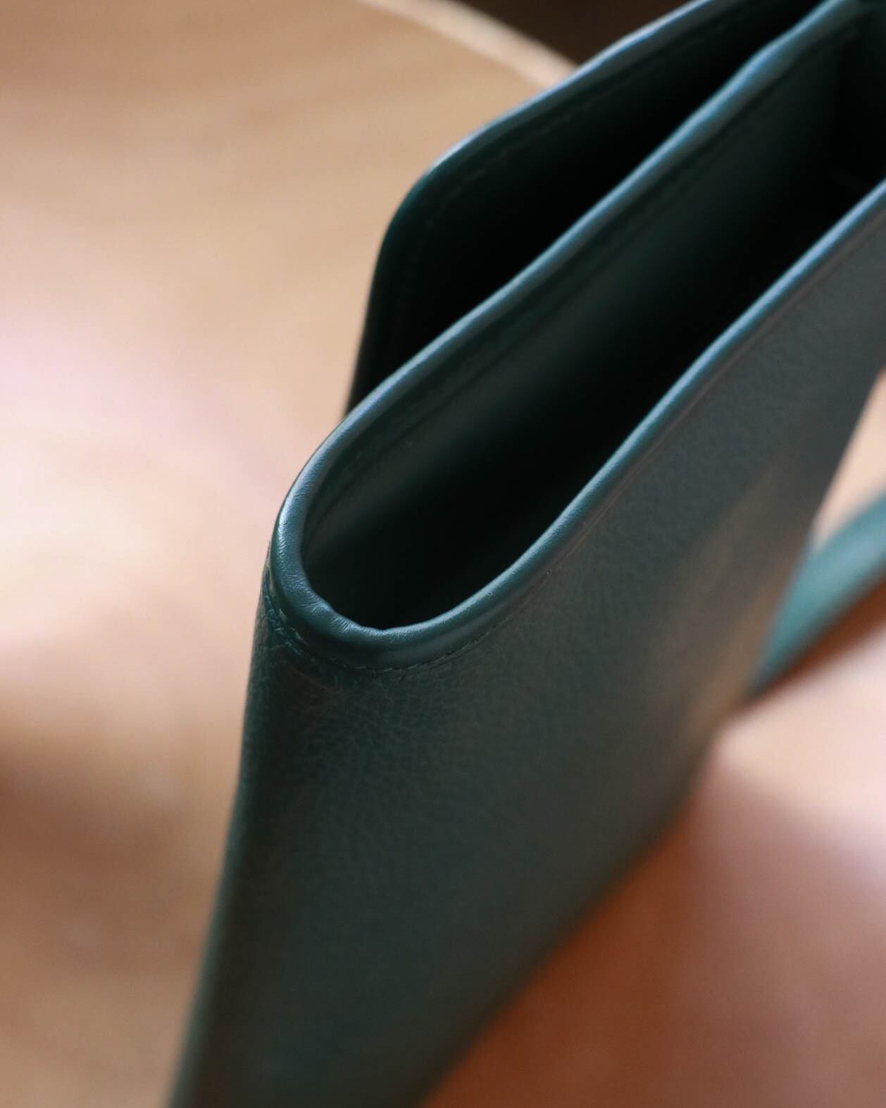 薄めでコンパクトなデザイン、インサイドはスエード仕立てですべてが美しい。