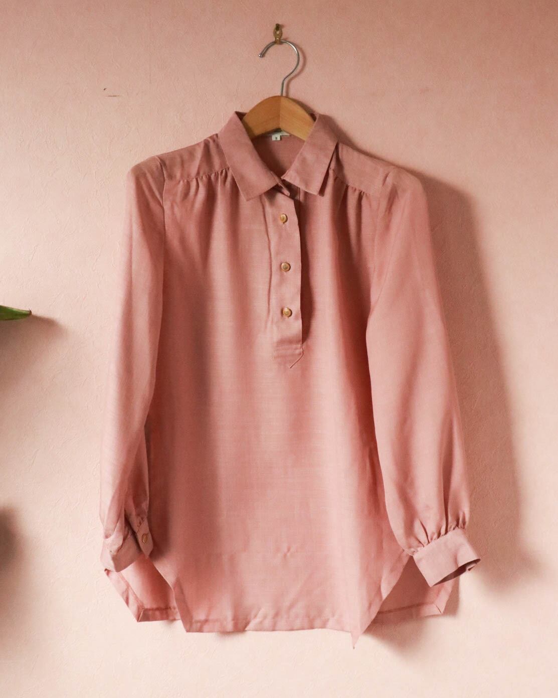 肌馴染みの良い落ち着いたピンクカラーがシーズンムードを盛り上げるピエールカルダンのブラウス。